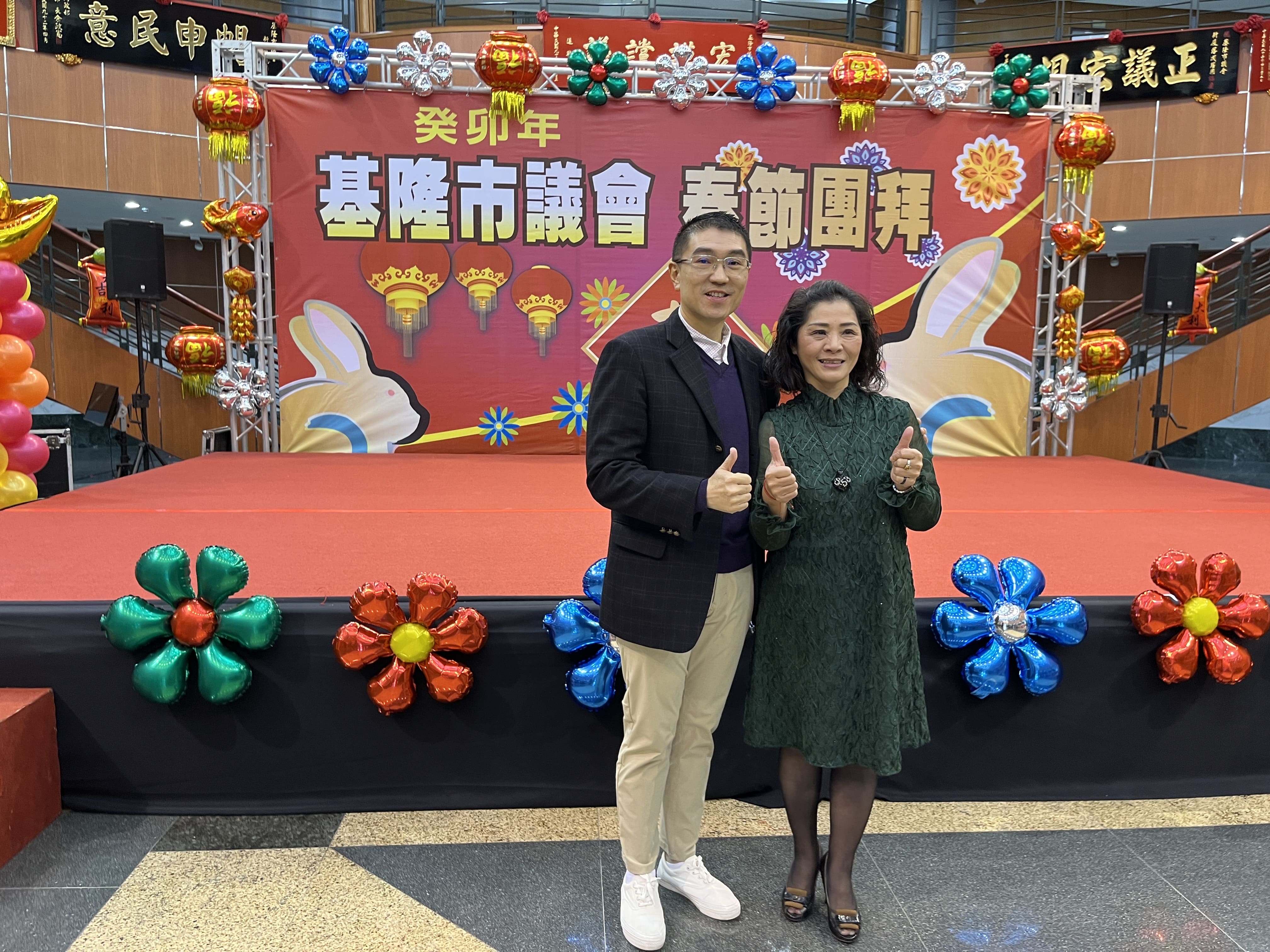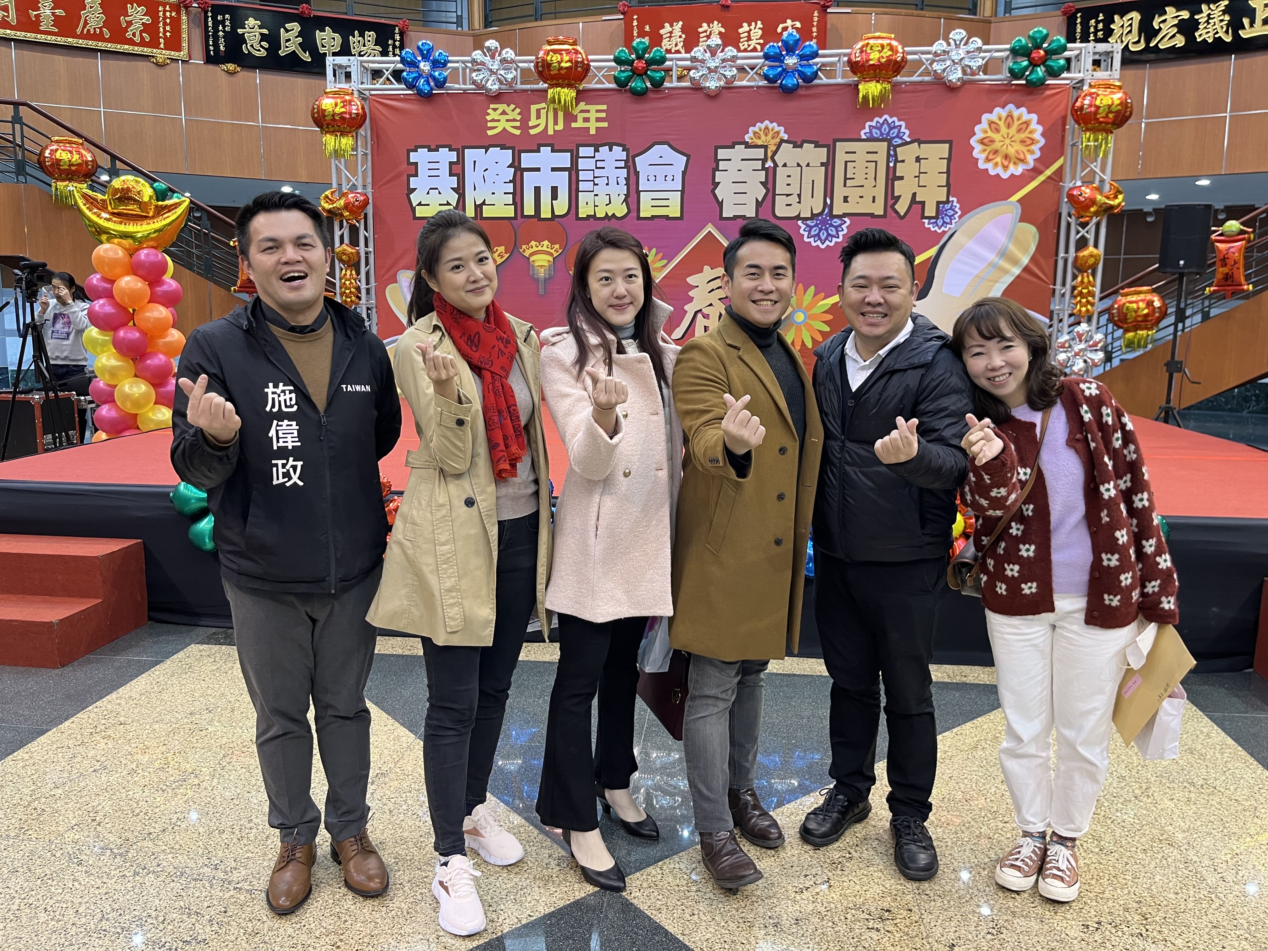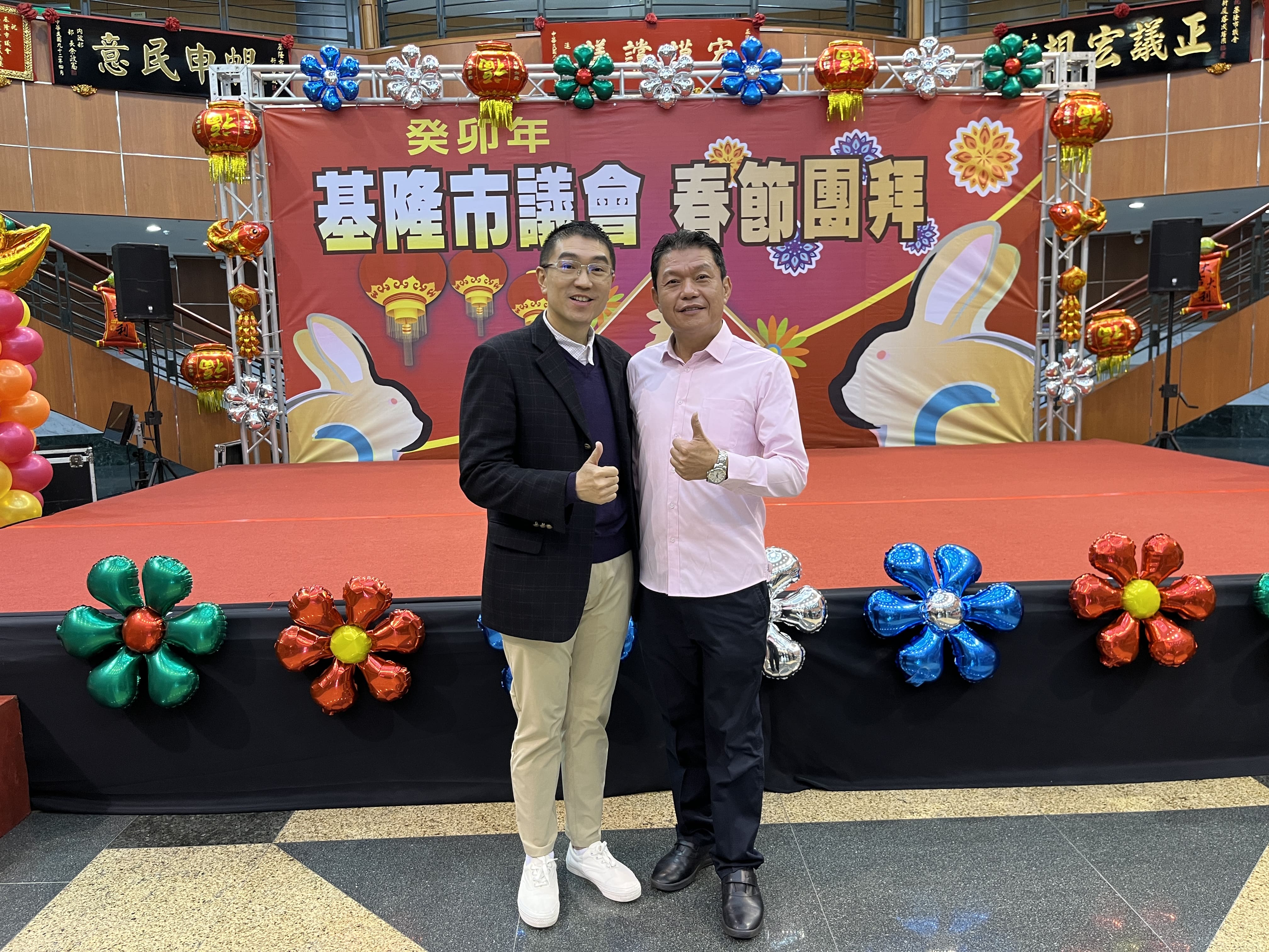 新春團拜在議會1樓舉辦,戶外還有行動餐車,讓議會氣氛不再嚴肅,議長童子瑋與市議員們齊聚一堂互道新年快樂,議長童子瑋在現場發放紅包外,並親自前往議會各科室慰問上班同仁。童子瑋表示,感謝所有在場的市民代言人,所有最敬愛的議員同事,我們都是一家人,一同因為「為基隆好」的信念齊聚在這裡奉獻,敬祝所有議會的好朋友、貴賓,身體健康、平安喜樂,新的一年鴻圖大展、兔躍新程。