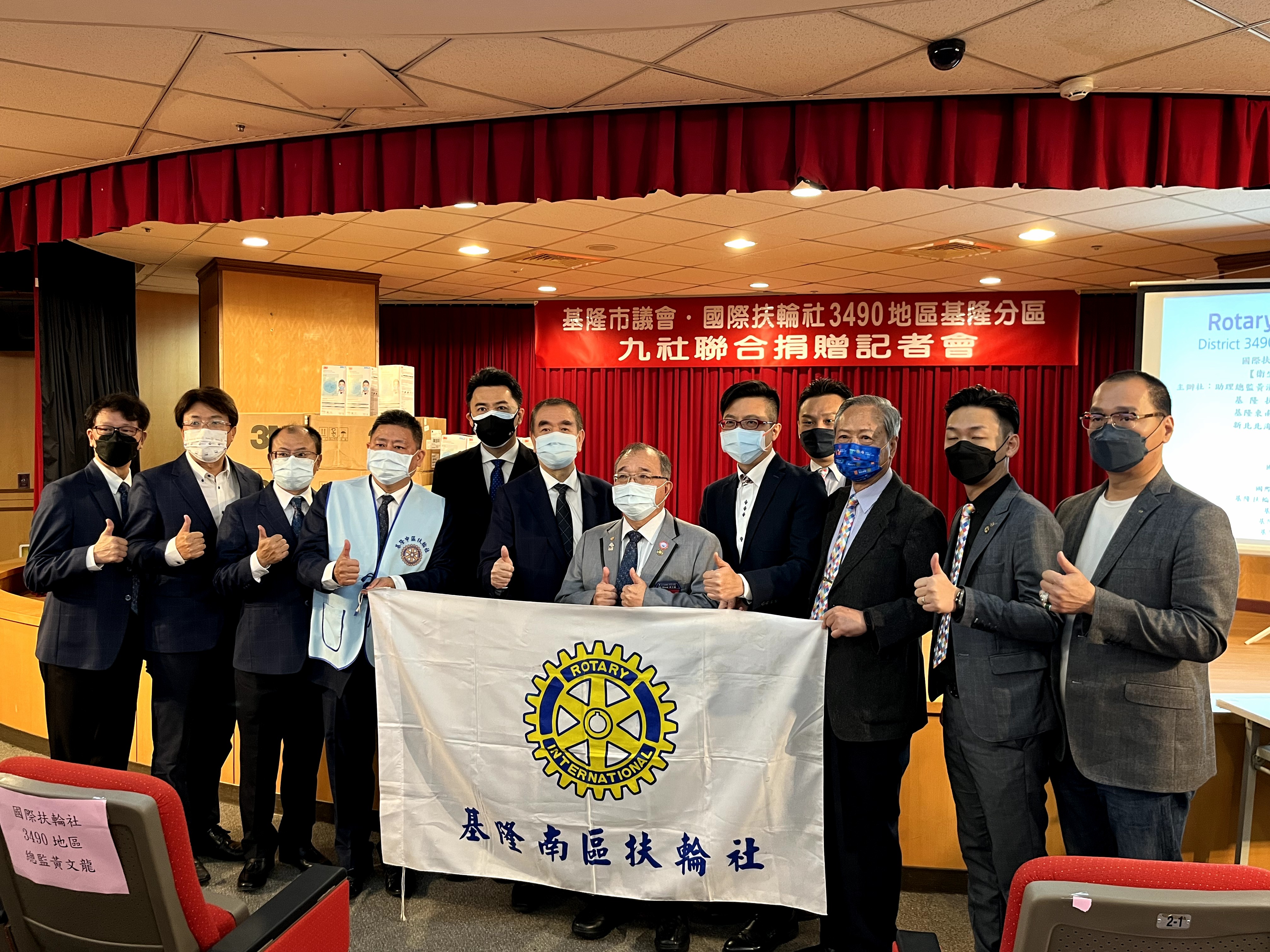 捐贈儀式在基隆市議會舉行,並由議長蔡旺璉、副議長林沛祥與國際扶輪社3490地區總監黃文龍與分區九社社長共同代表捐贈,並由衛生福利部基隆醫院副院長陳韋達代表受贈,展現政府部門、民間團體與醫療單位齊心抗疫的決心。