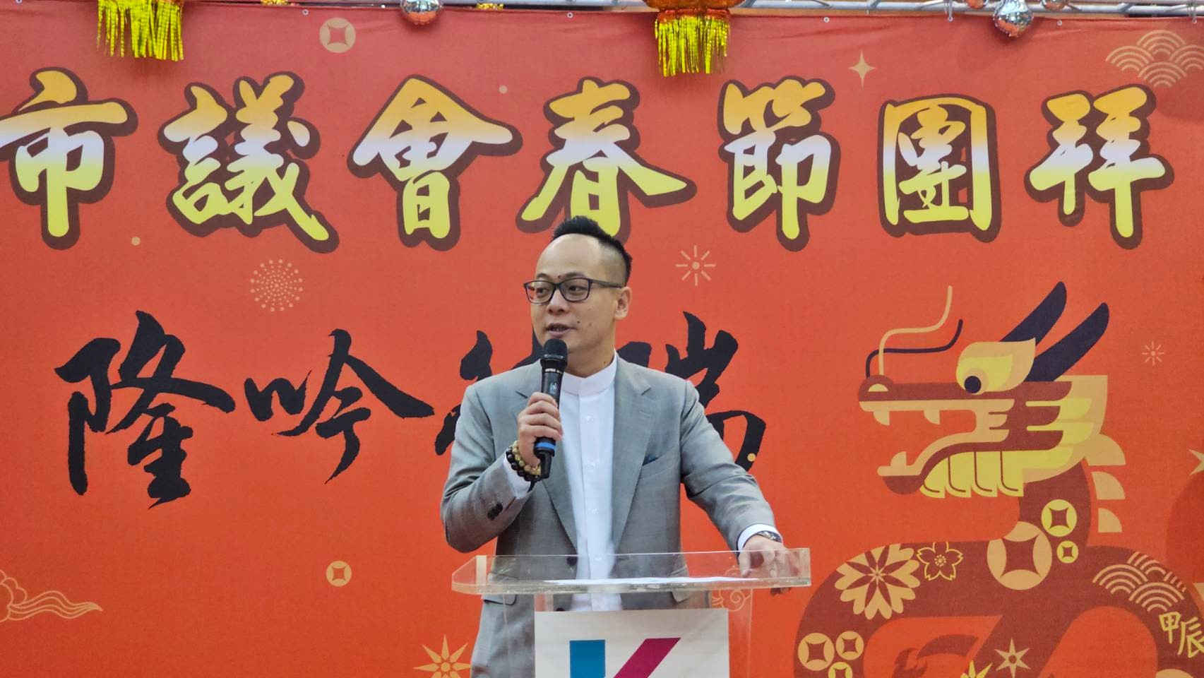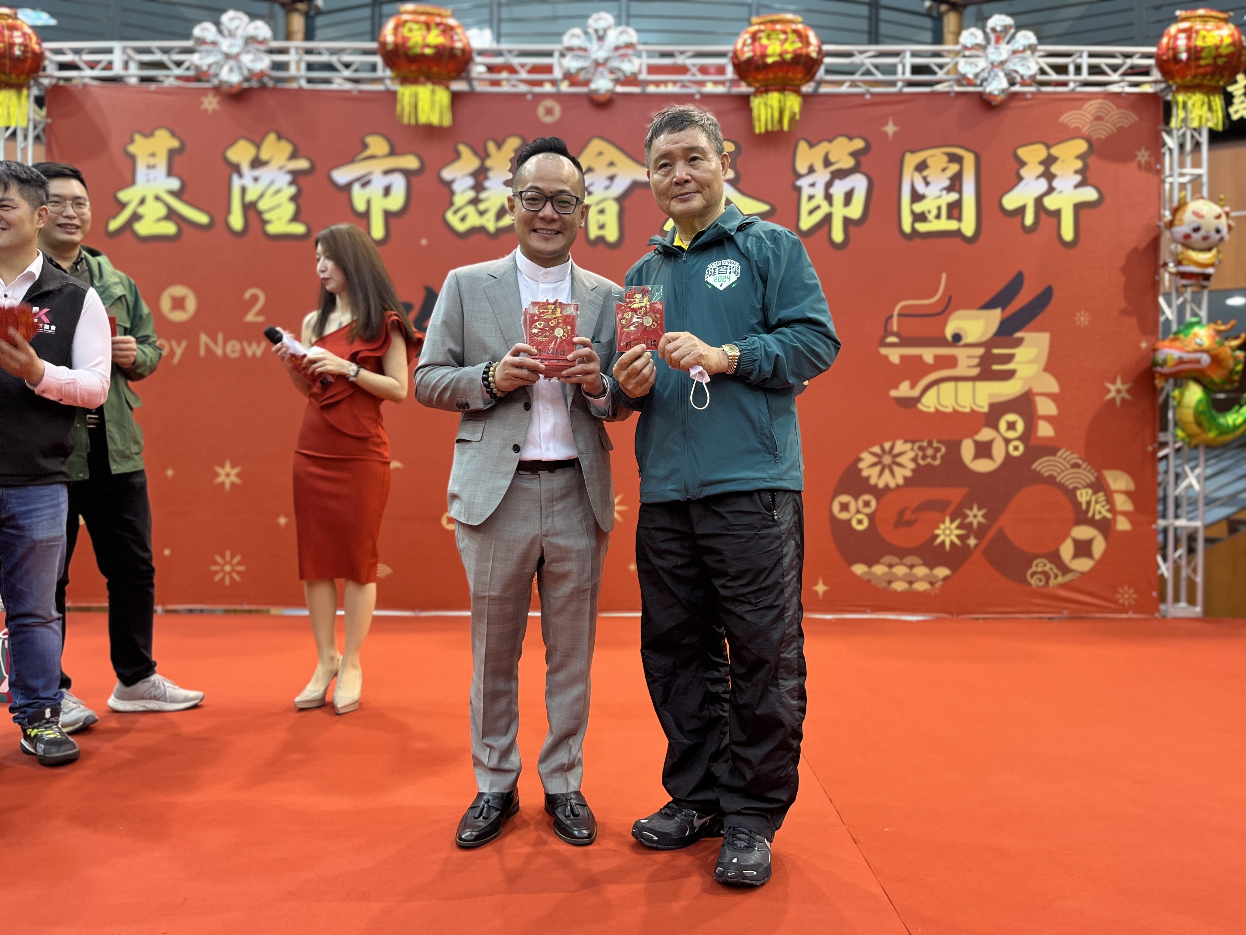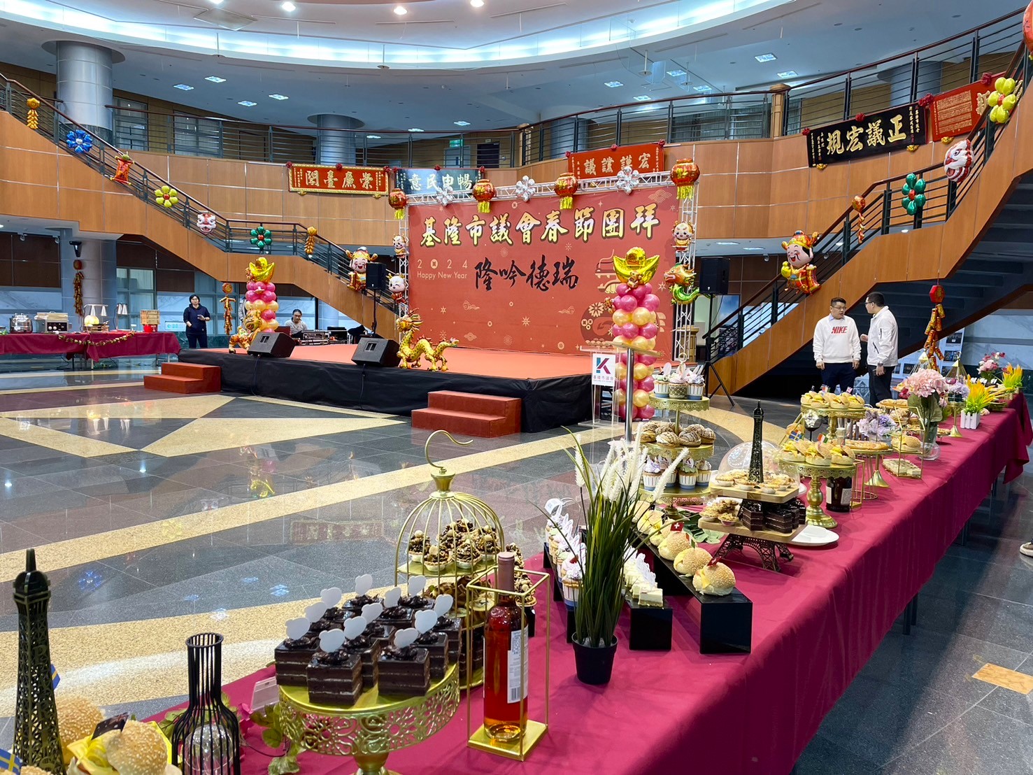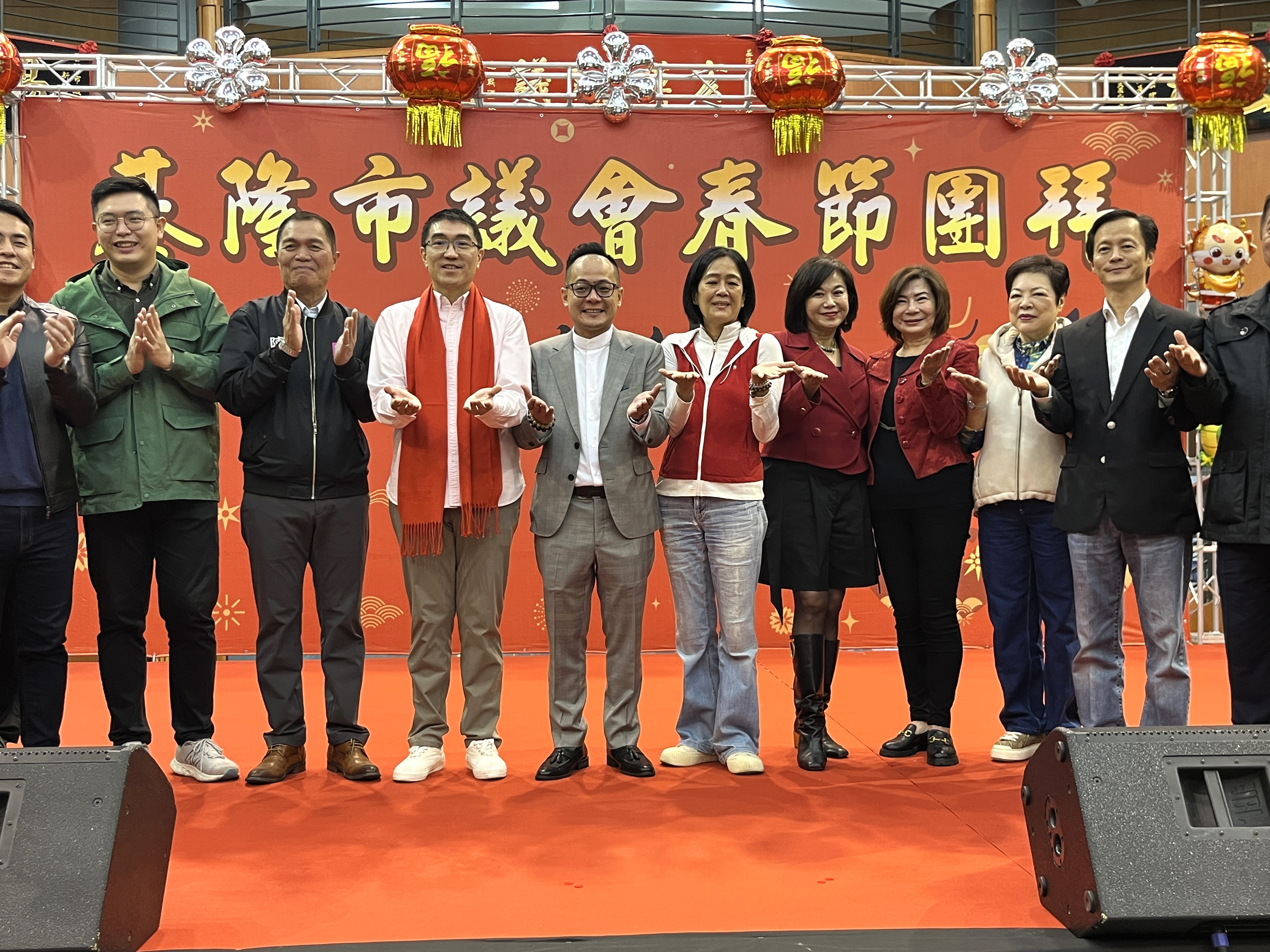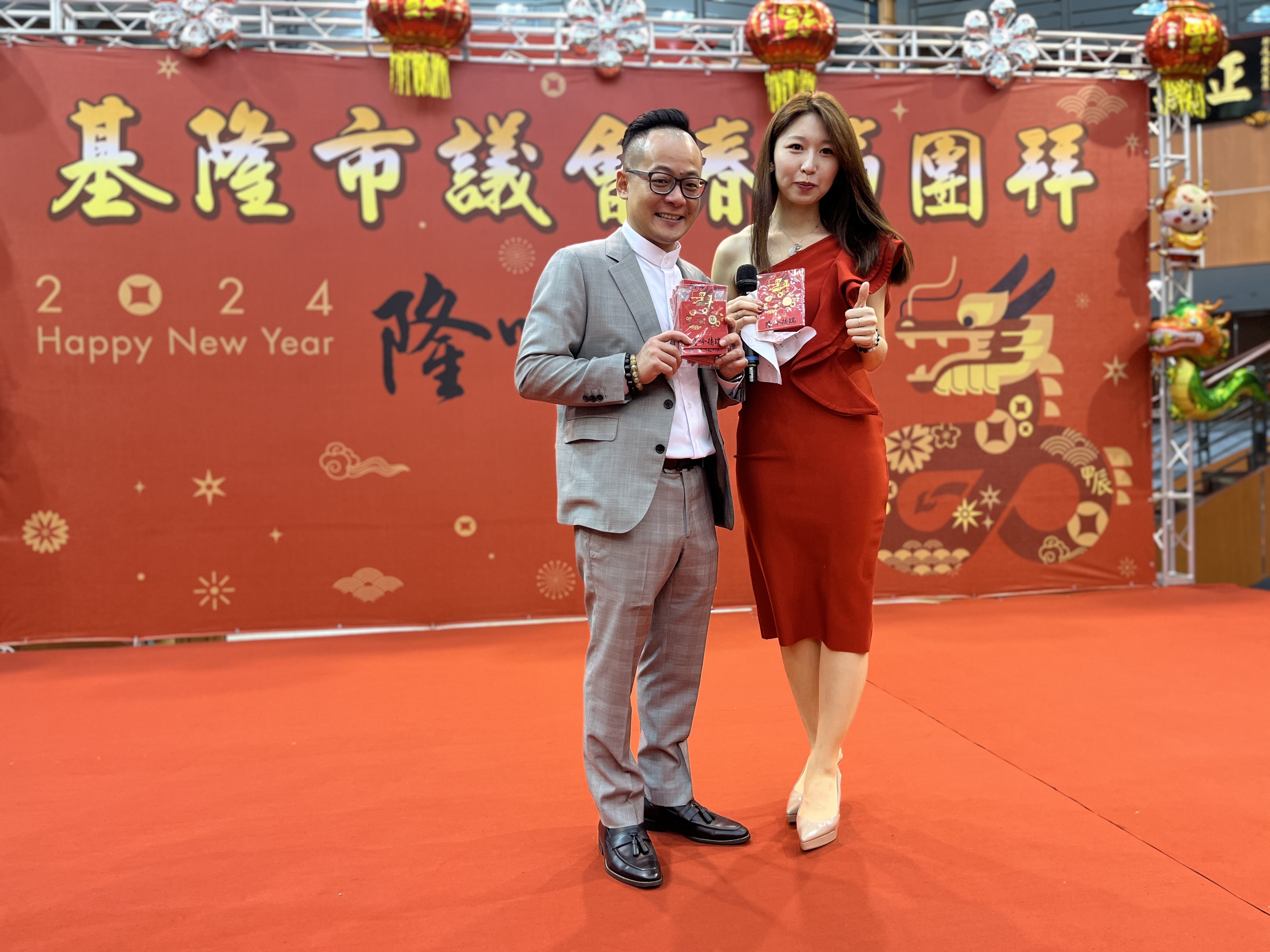 市議會1樓大廳架設大紅色的看板寫下「隆吟德瑞」另有財神爺造型等多樣氣球,格外有過年氣氛,現場主持人還教起帶動唱,議員們與市府人員齊聚一堂一起跳舞,現場好不熱鬧。在議長童子瑋的帶領下,30位市議員互道恭喜,童子瑋除了在現場發放紅包外,並親自前往議會各科室慰問上班同仁。童子瑋指出,在這個充滿喜悅和希望的新開始,謹代表基隆市議會,向大家致以最誠摯的新春祝福,祝福大家在新的一年裡身體健康,事業順利,也祝福故鄉基隆市運昌隆、隆吟德瑞。