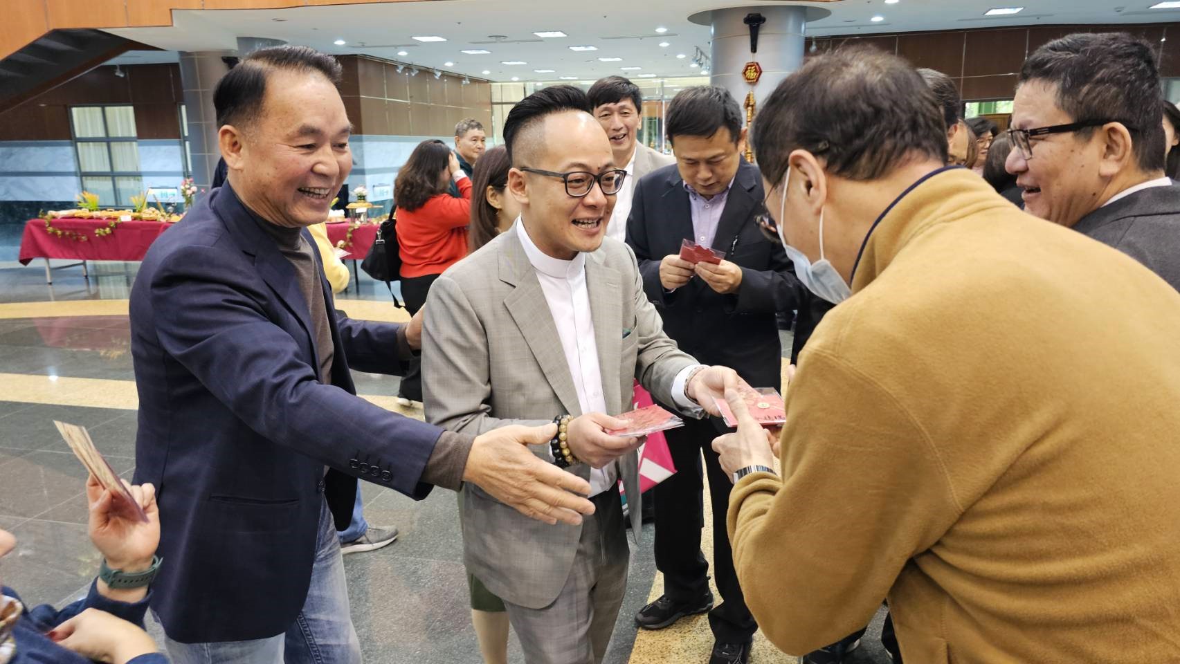 今天(15日)是甲辰龍年後第一個上班日,基隆市議會在議會1樓大廳舉辦團拜活動,30位市議員與議會工作人員互道恭喜外,市長謝國樑也帶著市府人員前來祝賀。議長童子瑋表示,過去一年的市政與大選選務,平安圓滿。今年是龍年象徵著勇氣、力量與幸福,基隆市議會會持續攜手民意,期許金龍年放下紛擾,共同致力基隆市的幸福與進步。